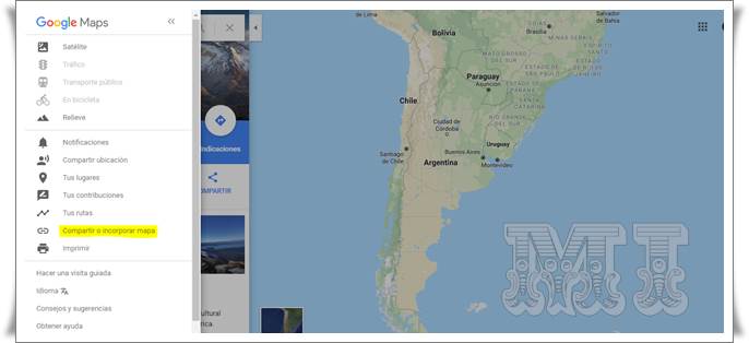 3.- En el Menú, elegir la opción Compartir o incorporar mapa